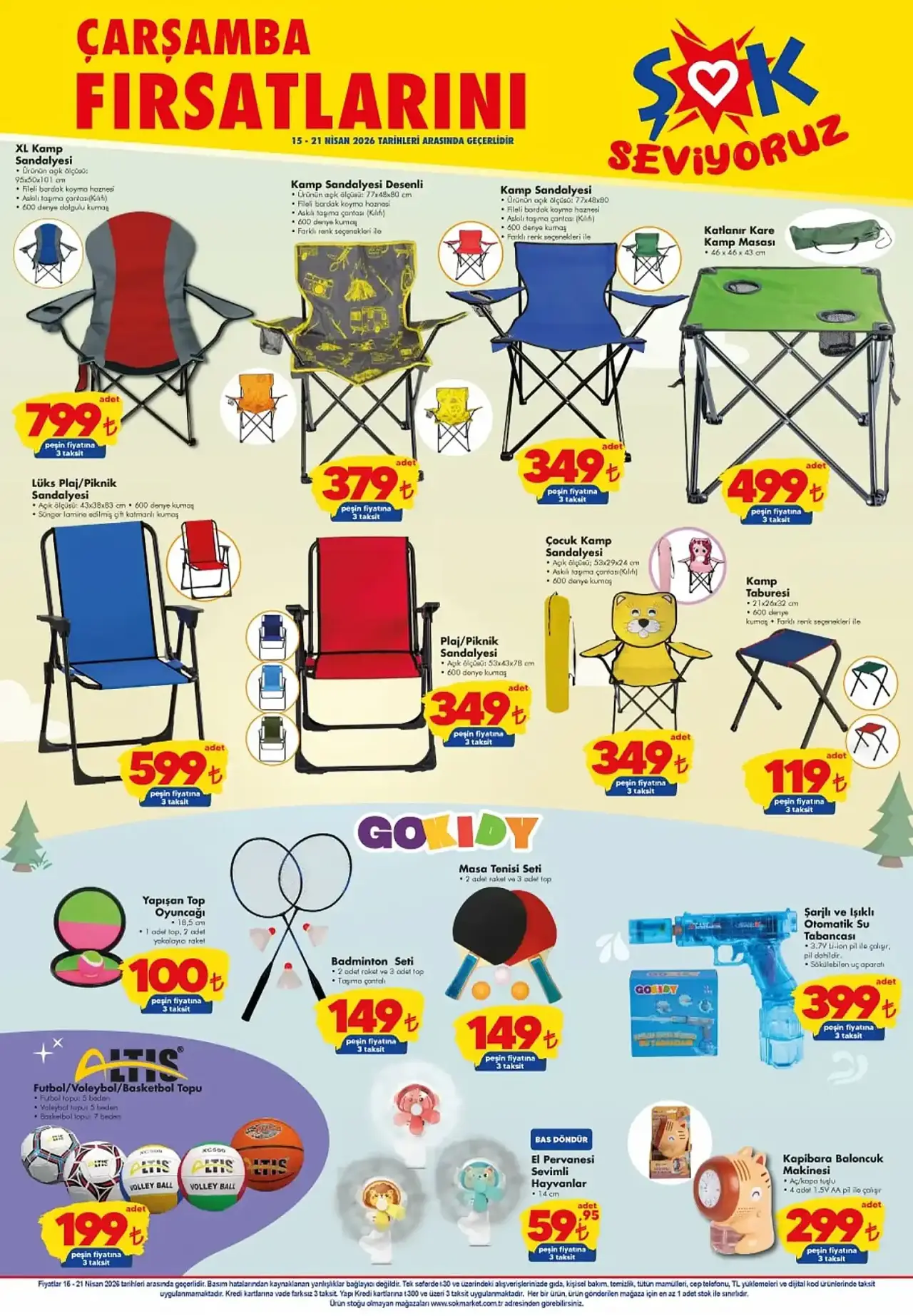 Yaz aylarının yaklaşmasıyla birlikte çocuklar için su tabancaları, masa tenisi setleri ve plaj sandalyeleri gibi eğlenceli ürünler de indirimli fiyatlarla listeye eklendi. ŞOK Market’in bu haftaki kampanyası hem fiziksel mağazalarda hem de "Cepte ŞOK" uygulamasında geçerli olacak.