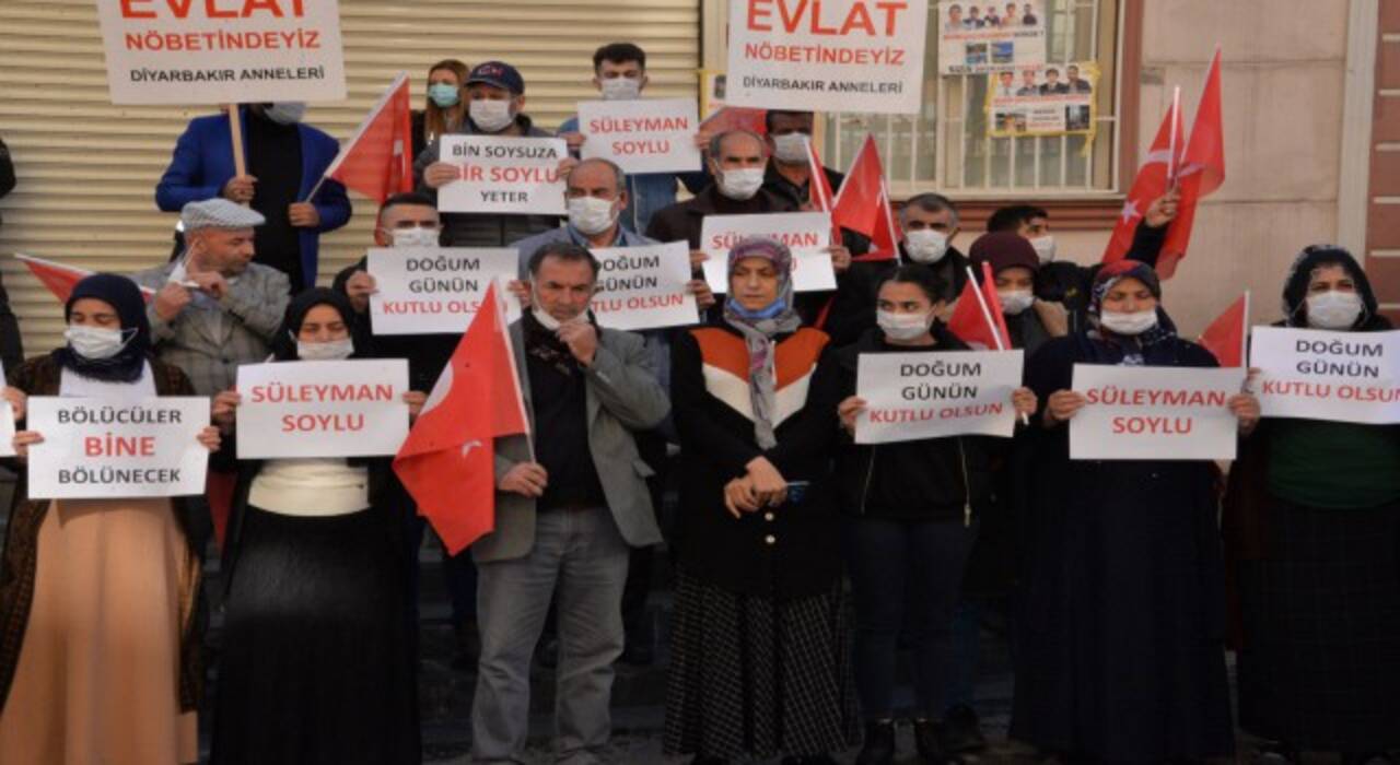 Diyarbakır anneleri HDP binası önünde "Bin soysuza, bire Soylu yeter", "PKK bine bölünecek" pankartları taşıyarak Süleyman Soylu'nun doğum gününü kutladı.
