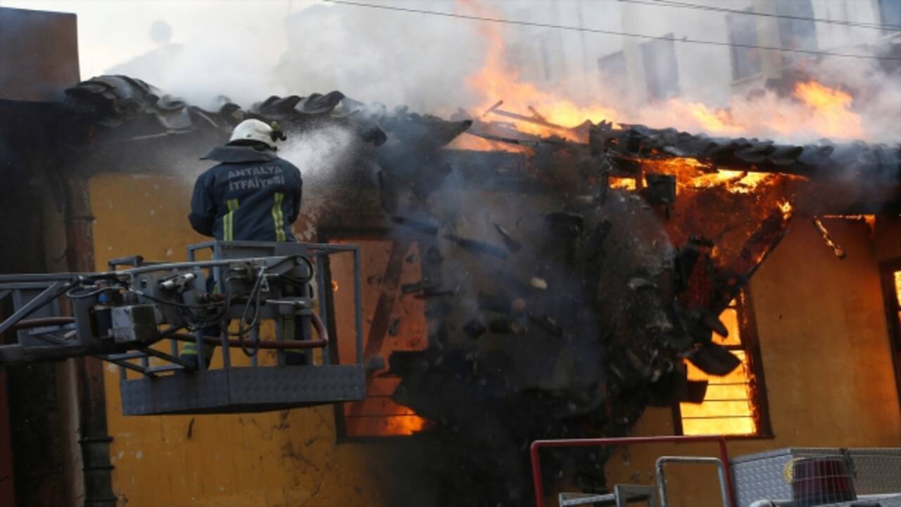 Antalya'da çıkan yangında tarihi konak kullanılmaz hale geldi.