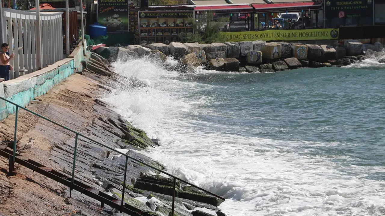 Marmara Denizi'nde 2 gündür etkili olan poyraz, Tekirdağ'da deniz ulaşımında aksamalara neden oluyor.
