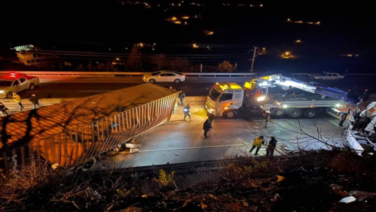 Freninin boşaldığı belirtilen tır, ana yoldan saparak girdiği rampada bir evin duvarına çarptıktan sonra, 10 metre yükseklikten yeniden anayola devrildi.