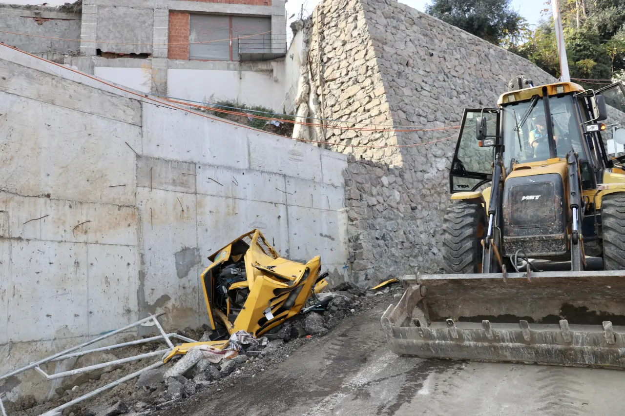 Kamyon, çarpmanın şiddetiyle yaklaşık 10 metre yükseklikten yola devrildi.