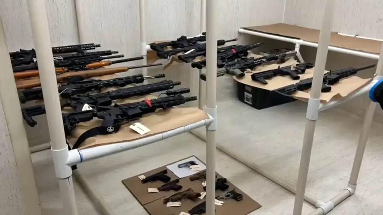 Yetkililer tarafından ele geçirilen ateşli silahların görüntüleri, tek tek dizilmiş uzun tüfek ve tabancaların sıralandığını gösteriyor. Cappetto, silahların yasal olarak satın alınıp alınmadığının belirsiz olduğunu belirterek, çoğunun seri numarası olmadığını ve esasen izlenemez olduğunu belirtti.
