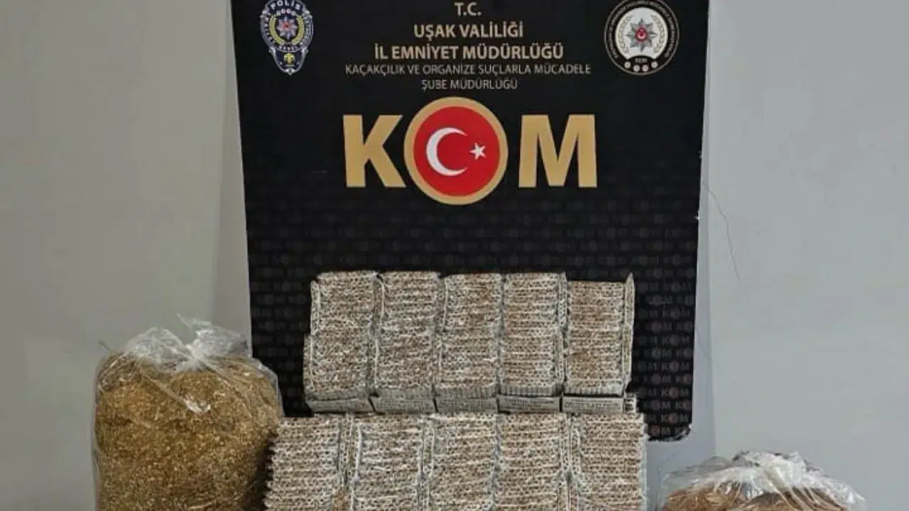Uşak İl Emniyet Müdürlüğü KOM Şube Müdürlüğü ekiplerince yapılan operasyonda çok sayıda kaçak makaron ve tütün ele geçirildi.