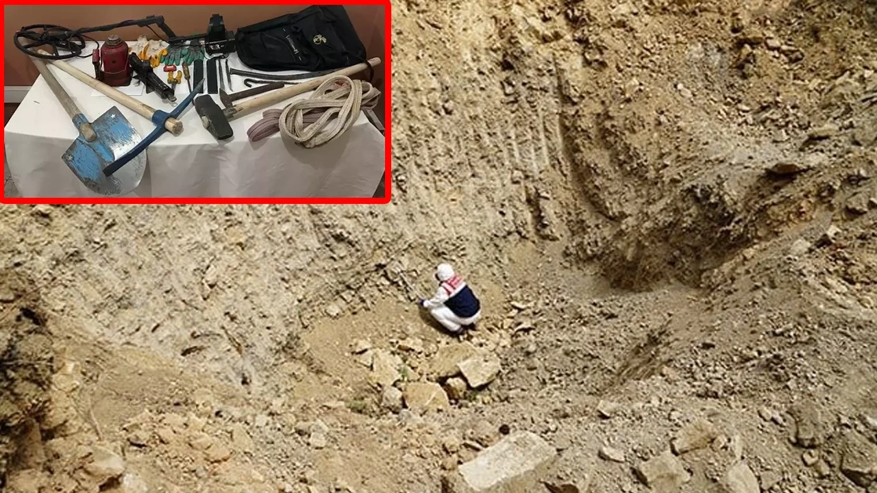 Yapılan aramalarda, suçluların kullandığı çok sayıda kazı ekipmanı ele geçirildi. Ekipmanlar arasında 2 detektör, 2 eldiven, 2 kriko, 2 kırıcı çivi, balyoz, kazma, kürek, ucu sivri delici demir, manivela demiri, 6 metre halat, kafa lambası, çekiç, pense, tornavida, demir kanca ve sırt çantası bulunuyordu.