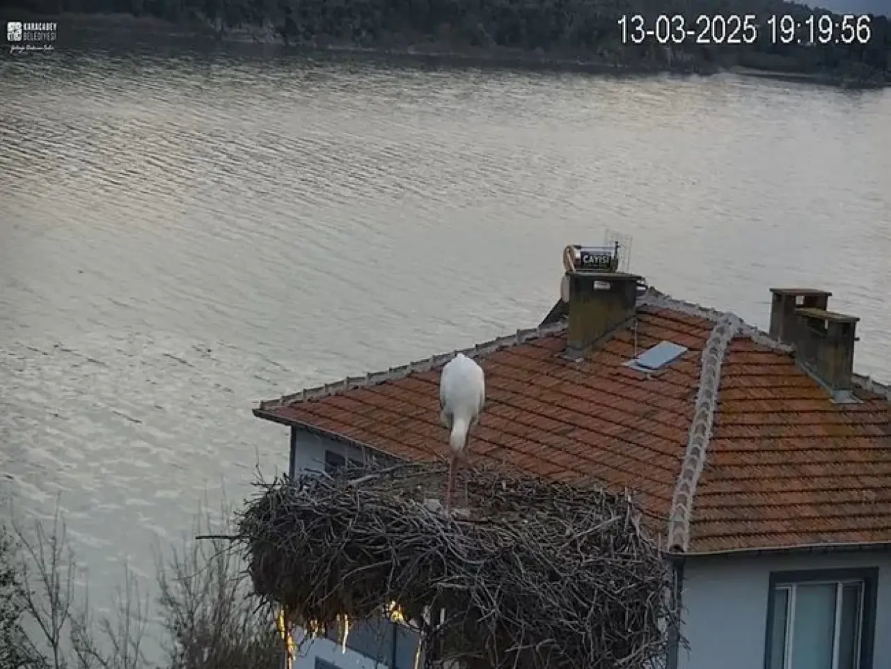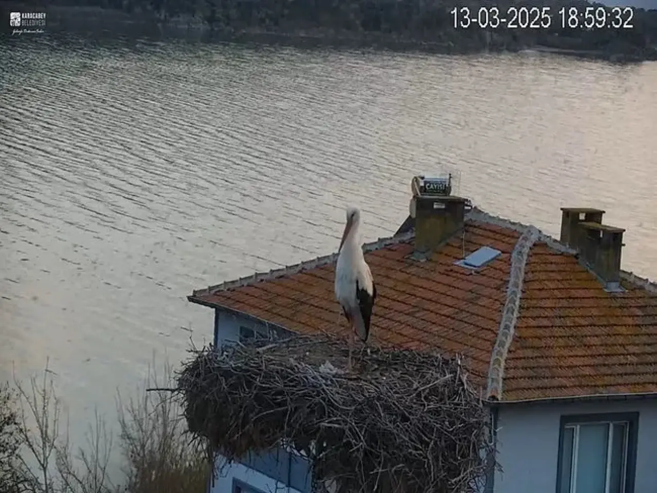 Yalnız başına yuvasında olan Yaren, deprem öncesi ayağa kalkarak çevresini izledi, ardından kanat çırpmaya başladı. Sarsıntı geçene kadar ayakta duran ve çevresine tepki veren leylek, daha sonra eski sakinliğine döndü.