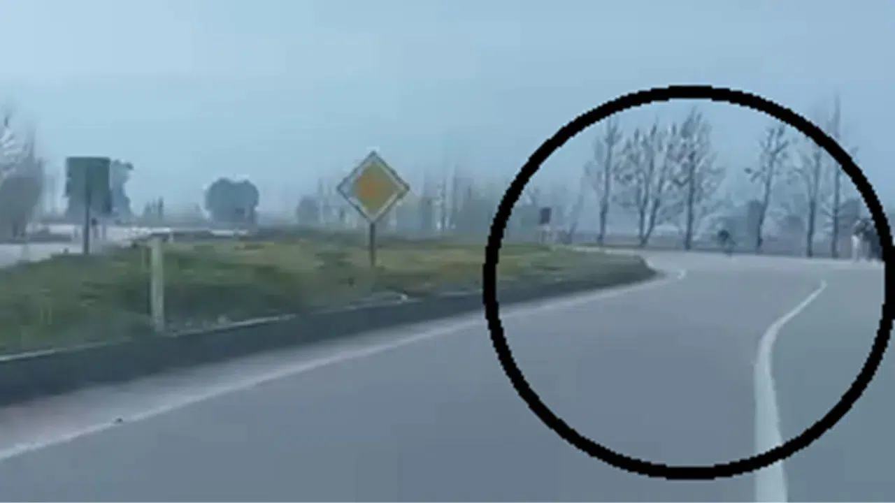 Bir süre motosikletin üzerine yatarak ilerleyen sürücü, direksiyon hakimiyetini kaybederek tarlaya uçtu. Motosiklet sürücüsünün kaza 'geliyorum' demesine rağmen akrobasiden vazgeçmediği anlar ve tarlaya uçtuğu anlar cep telefonu kamerasına yansıdı.