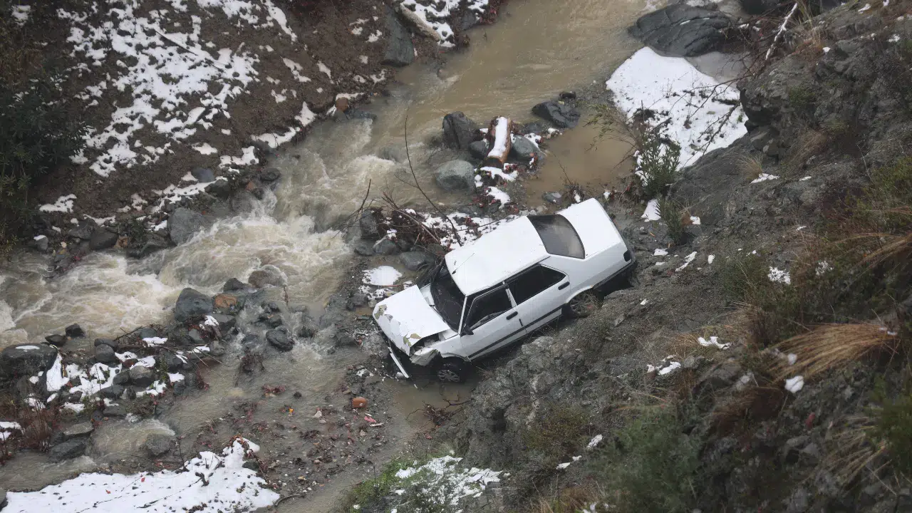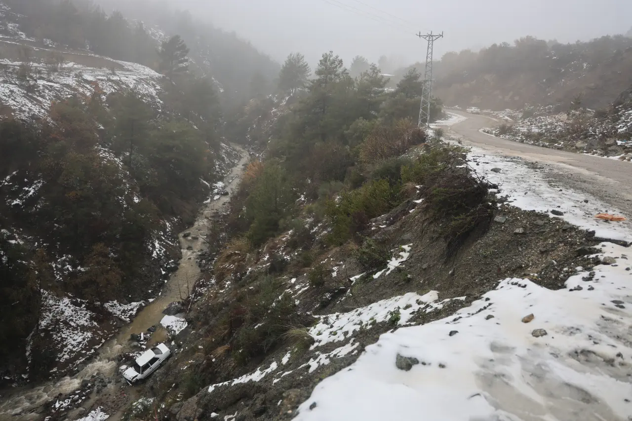 Kaza, Defne ilçesi Ballıöz Mahallesi'nde meydana geldi. Edinilen bilgiye göre, kar yağışıyla birlikte zemini kayganlaşan yolda ilerleyen Tofaş marka otomobil, sürücüsünün direksiyon hakimiyetini kaybetmesi sonucu kontrolden çıktı. Metrelerce yükseklikteki uçurumdan aşağı savrulan aracın sürücüsü, otomobil dereye uçmadan hemen önce kapıyı açıp kendisini dışarı atarak yaralı kurtuldu.