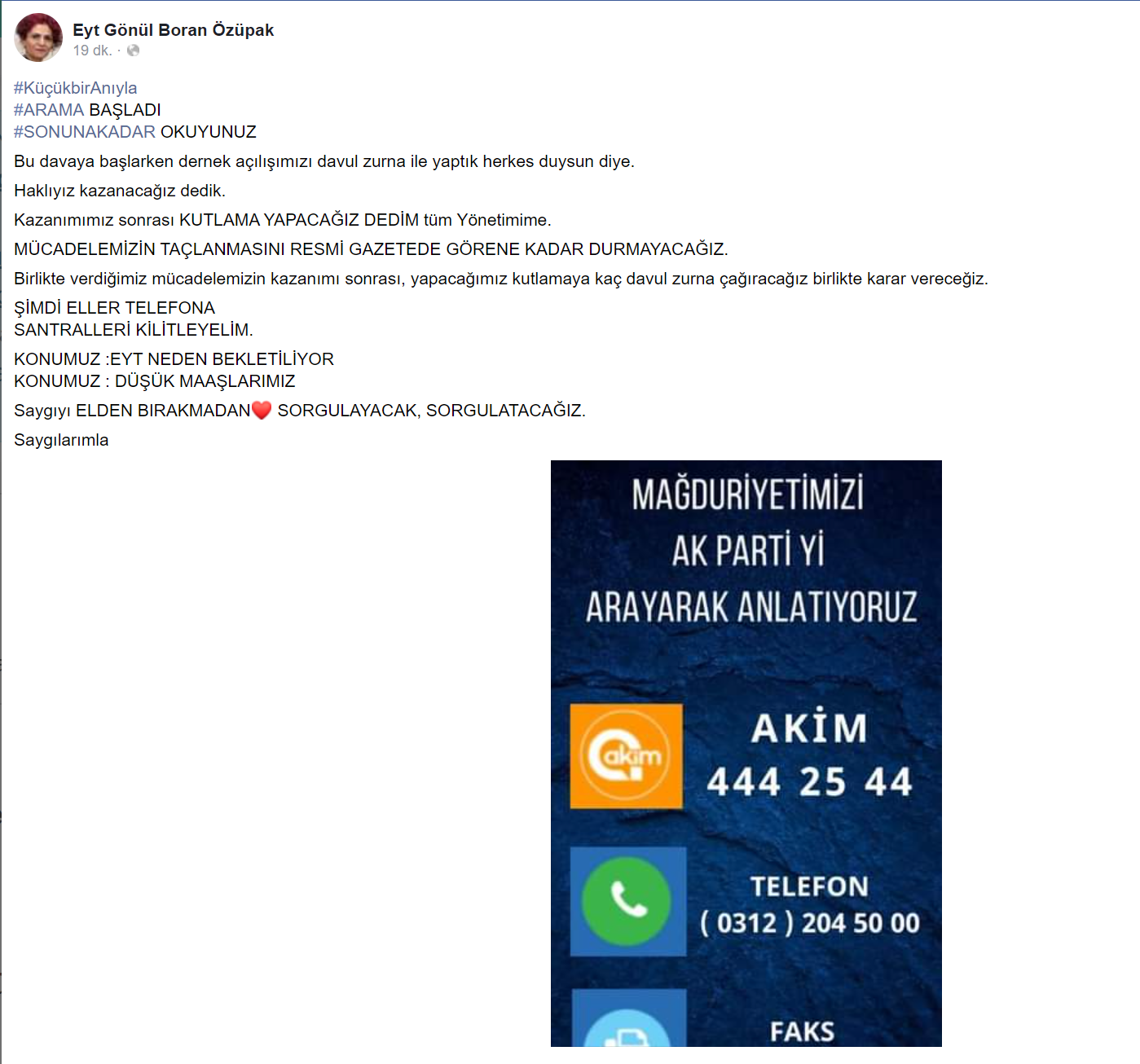 Yıllardır ellerinden alınan haklarını geri kazanabilmek için mücadele eden Gönül Boran Özüpak, sosyal medya hesabı üzerinden EYT'lilere seslendi.