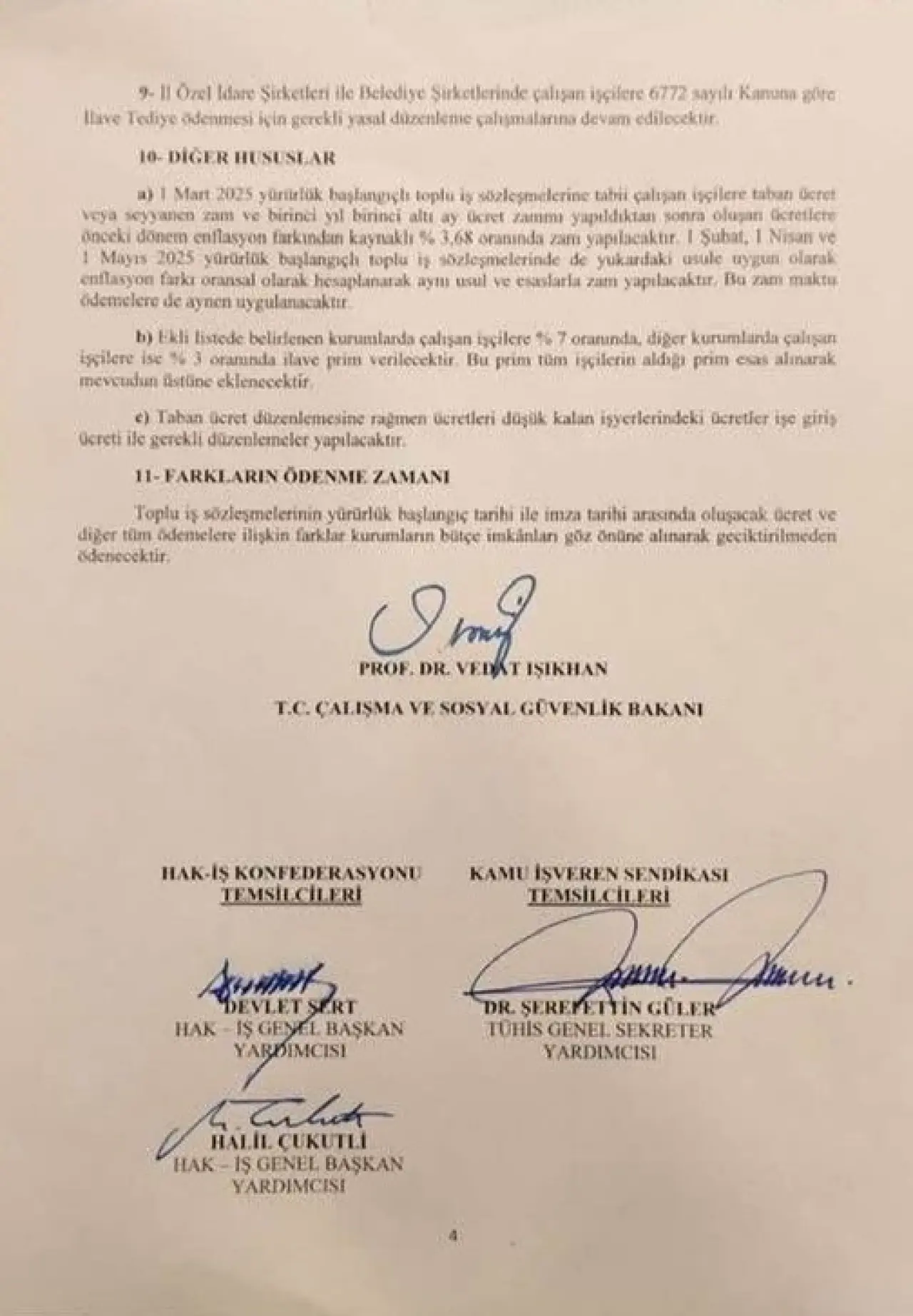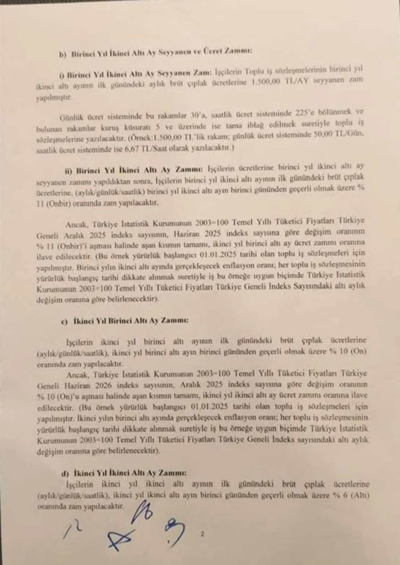 Ayrıca, yıllık enflasyonun zam oranını aşması durumunda, aşan kısım bir sonraki dönem zammına enflasyon farkı olarak eklenecek. Mart 2025 itibarıyla geçerli olacak toplu sözleşmelere, önceki dönemden kaynaklı %3,68 ek zam yansıtılacak. Sözleşme yürürlük tarihi farklı olanlar için bu oran, orantılı olarak hesaplanacak.