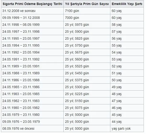 Şartlar ilk sigortalılık tarihine göre değişse de, 10 yılla, yani 3600 günle emekli olmak da mümkün.