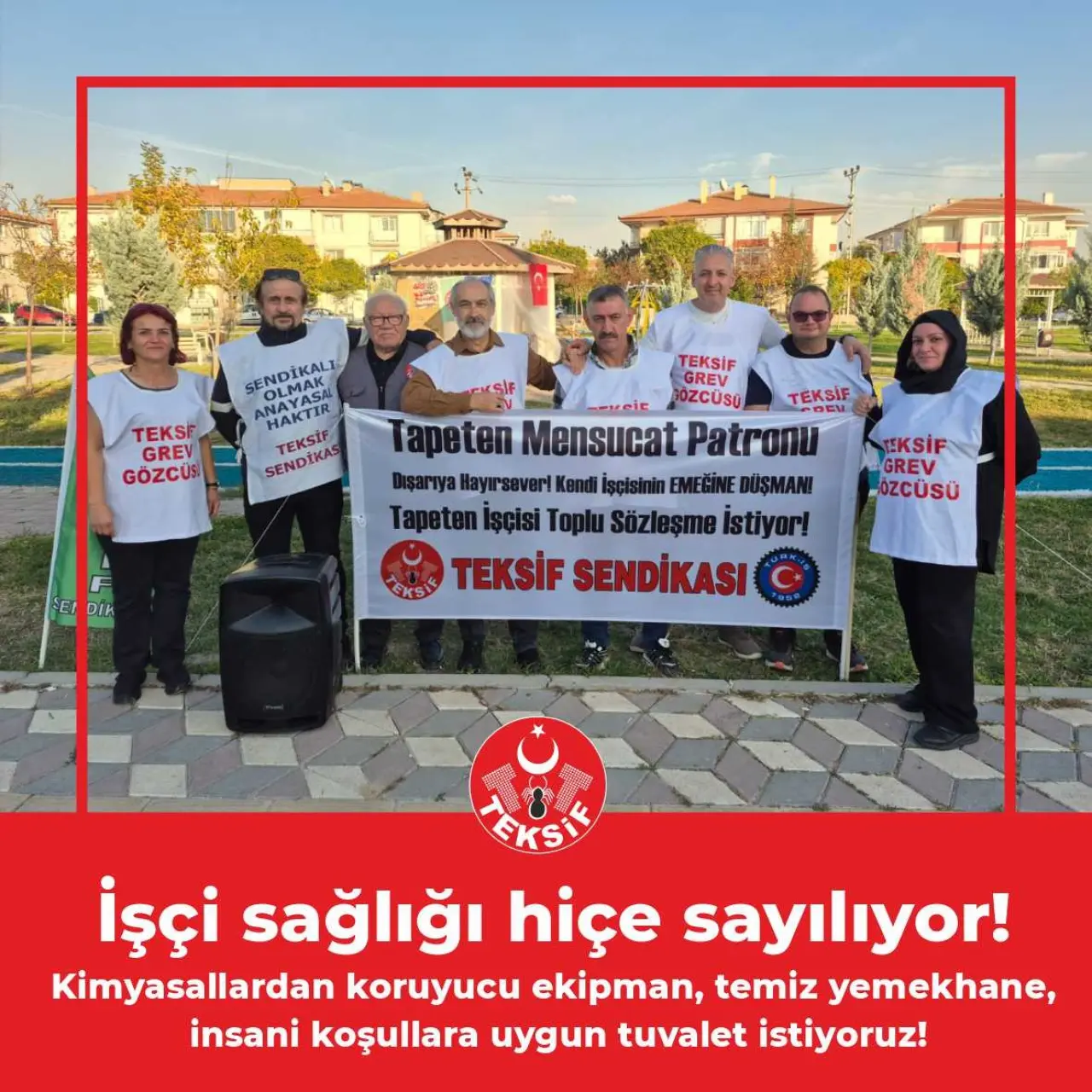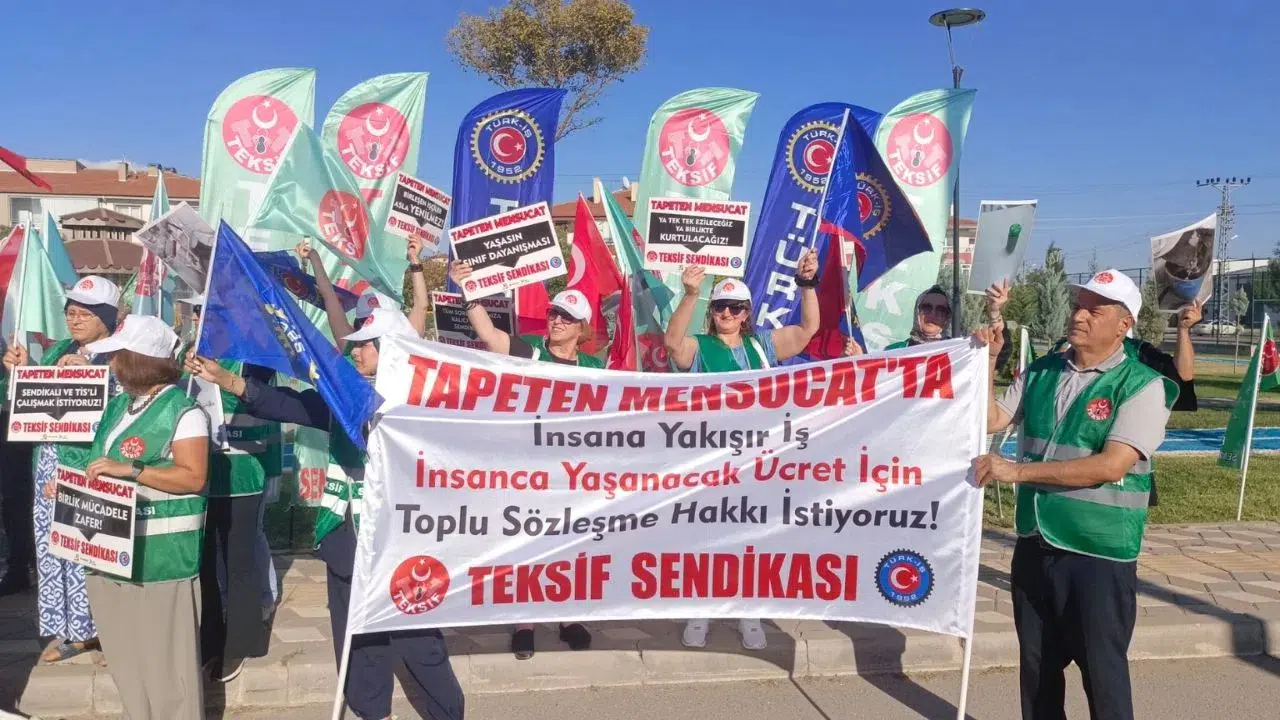 Sendikamızın 16 Ağustos 2023 tarihinde gerekli yasal çoğunluğa ulaşarak Çalışma ve Sosyal Güvenlik Bakanlığı'na başvurduğu, 29 Ağustos 2023 tarihinde yetki belgesinin alındığı ancak çalışanların toplu iş sözleşmesi haklarına ulaşmasını engellemek için girişilen yetki itirazı davaları gibi yasal sürelerin sonunda 10 Şubat 2025 tarihinde sendikamızın yetkisinin kesinleşerek toplu iş sözleşmeleri müzakereleri başlayan, Ankara ilinde faaliyet gösteren Tapeten Mensucat Sanayi ve Ticaret A.Ş. iş yerinde şu ana kadar herhangi bir anlaşma sağlanamamış olması neticesiyle 6356 sayılı Sendikalar ve Toplu iş Sözleşmesi Kanunu hükümlerince 4 Eylül 2025 itibariyle grev başlamıştır.