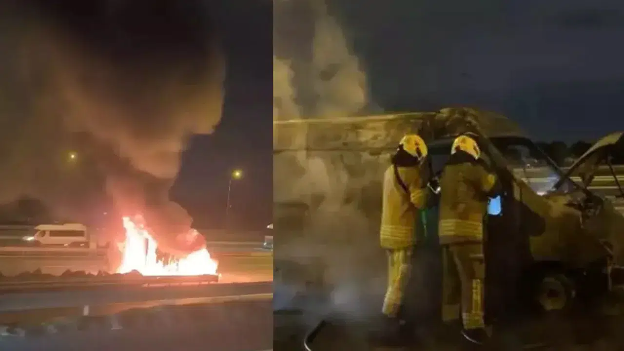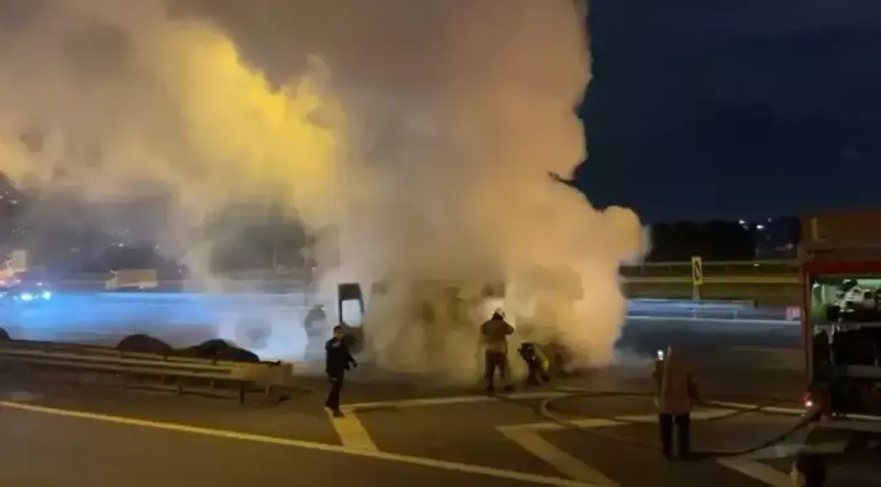 Edinilen bilgilere göre, motor bölümünden henüz bilinmeyen bir nedenle dumanlar yükselmeye başlayan minibüste kısa sürede alevler oluştu. Yangını fark eden sürücü M.Ç., 34 GC 9439 plakalı minibüsü emniyet şeridine çekerek araçtan indi. Sürücünün araçtan ayrılmasının ardından alevler hızla büyüyerek minibüsün tamamını sardı.