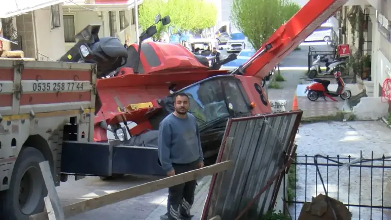 Olay, Merkez Mahallesi Öz Sokakta öğle saatlerinde meydana geldi. Sokakta bulunan inşaata yük taşıyan iş makinesi yokuşta henüz bilinmeyen bir nedenle geri kaydı. İş makinesi park halindeki hafif ticari araca ve bir binaya çarptı. İhbar üzerine olay yerine itfaiye ve polis ekipleri sevk edildi. Kazada şans eseri ölen ya da yaralanan olmazken binada ve 4 araçta hasar meydana geldi.