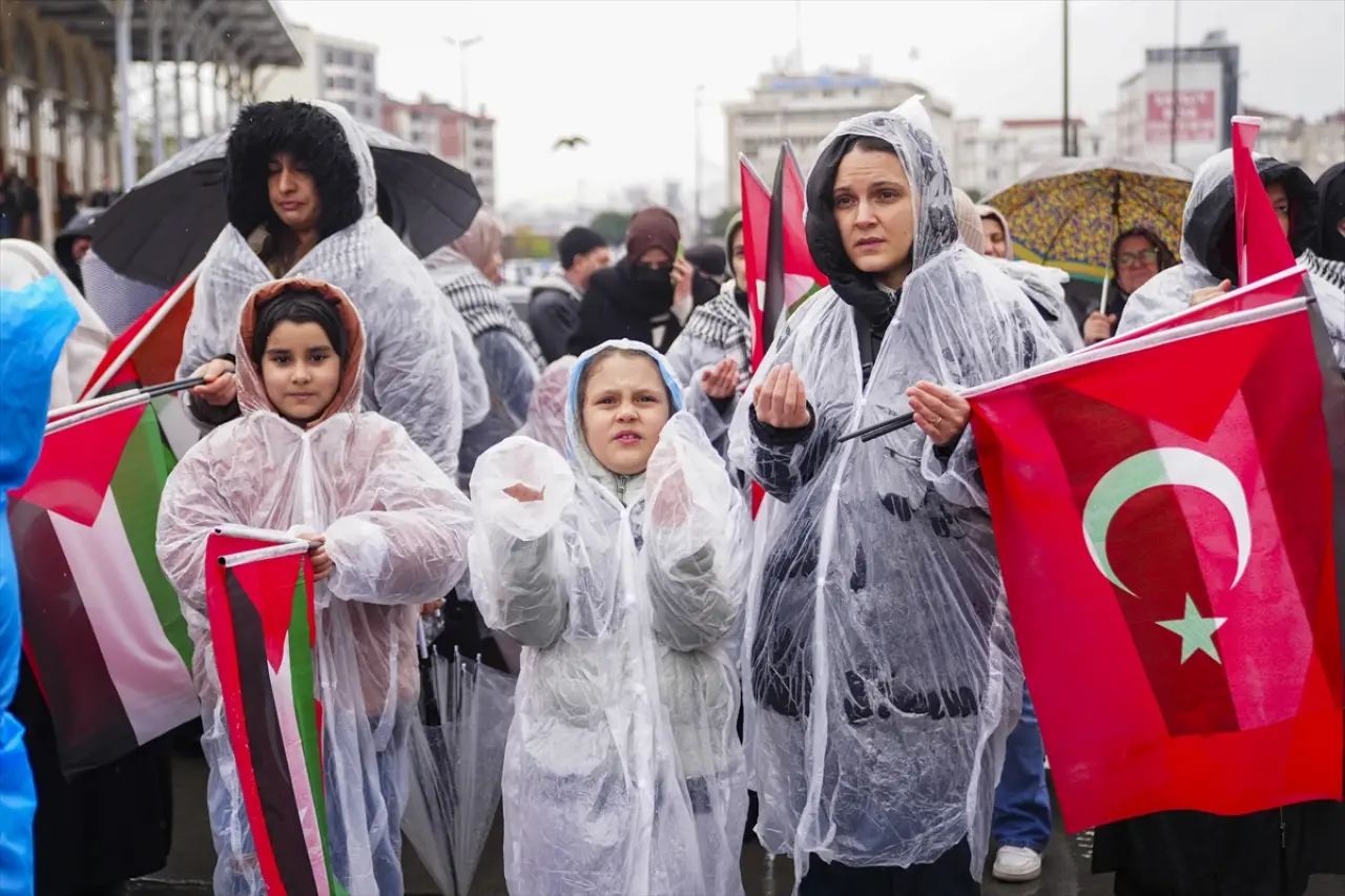 YÜZLERCE KİŞİ, SOYKIRIMCI İSRAİL'İN SALDIRILARINI PROTESTO ETTİ
