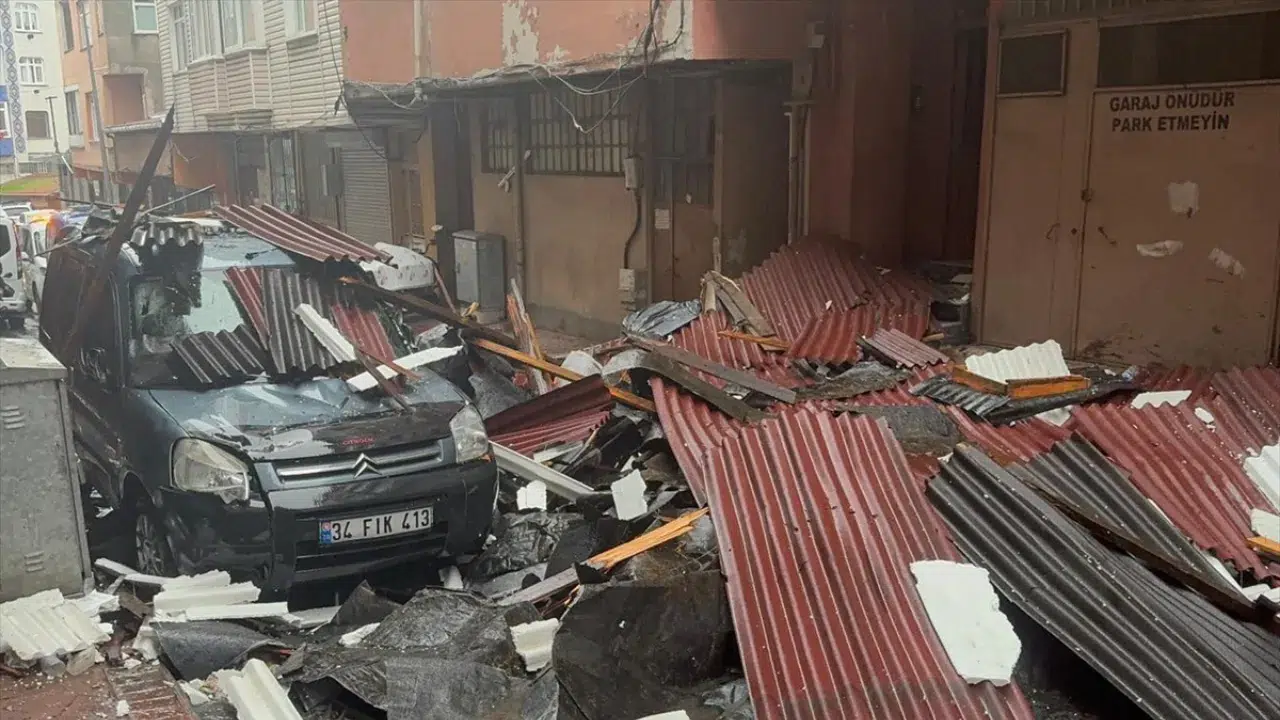 Beyoğlu Piyalepaşa Mahallesi Toros Sokak'ta 2 katlı bir binanın çatısı fırtınanın etkisiyle yerinden koparak sokağa savruldu. Olay sırasında bina sakinleri panikle sokağa çıkarken, çatının parçaları park halindeki 4 otomobilin üzerine düşerek hasara neden oldu.