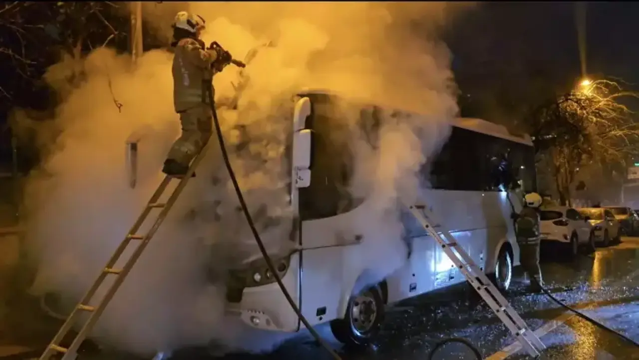 Yangın nedeniyle midibüste hasar oluştuğu bildirildi. Olayla ilgili inceleme başlatıldı.