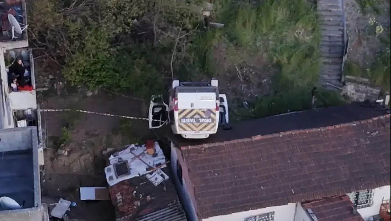 Kaza, dün saat 18.50 sıralarında Çağlayan Mahallesi'nde meydana geldi. Edinilen bilgiye göre, yokuş aşağı ters yönden indiği sırada şoförünün direksiyon hakimiyetini kaybettiği 34 LVU 535 plakalı okul servisi önce takla attı; ardından da evin çatısına düştü. Çevredekilerin ihbarı üzerine olay yerine itfaiye, sağlık ve polis ekipleri sevk edildi. İtfaiye ekipleri araçta sıkışan şoför Mustafa Fedaioğulları'nı bulunduğu yerden kurtardı.