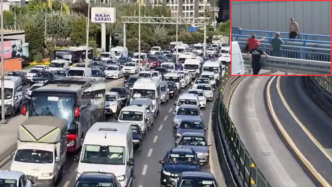 Durumu fark eden vatandaşlar hemen 112 Acil Çağrı Merkezi'ne ihbarda bulundu. İhbar sonucunda bölgeye polis, sağlık ve itfaiye ekipleri sevk edildi. İtfaiye ekipleri, şahsın atlama ihtimaline karşılık E-5 üzerinde köprünün altına şişme yatağı açtı. Uzun uğraşlar sonucu ikna edilen adam köprüden indirildi.
