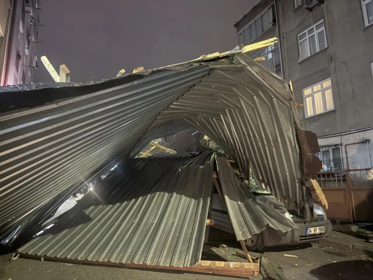 KÜÇÜKÇEKMECE'DE UÇAN ÇATI, ARAÇLARIN ÜZERİNE DÜŞTÜ