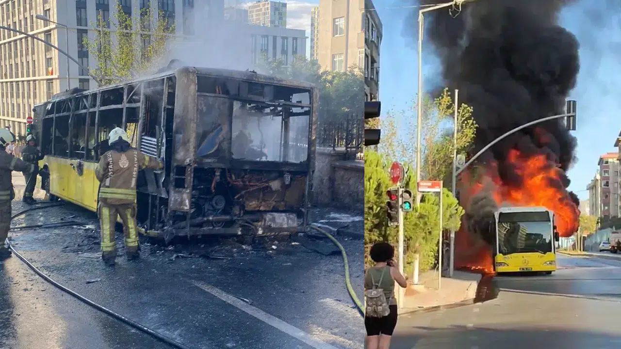 Ümraniye'de seyir halindeki bir İETT otobüsü henüz bilinmeyen bir nedenle alev aldı. Kısa sürede büyüyen yangında otobüs alev topuna dönerken, şoför ve yolcular son anda tahliye edildi.