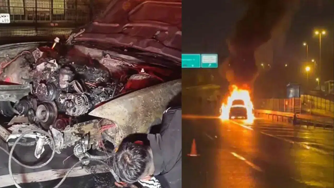 Durumu fark eden sürücü, aracı emniyet şeridine çekerek durdurdu ve durumu polis ile itfaiye ekiplerine bildirdi.
