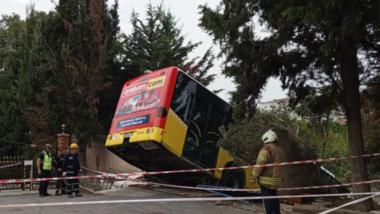 Olay, Üsküdar Barbaros Mahallesi’nde sabah saatlerinde meydana geldi. Edinilen bilgiye göre, yokuş aşağı seyir halindeyken freni patlayan İETT otobüsü sürücüsünün kontrolünden çıkarak yolun sonunda bulunan istinat duvarına çarptı. Çarpmanın etkisiyle duvarın bir bölümü yıkılırken otobüsün ön kısmı boşluğa asılı kaldı. İhbar üzerine olay yerine itfaiye, polis ve sağlık ekipleri sevk edildi. Ekiplerin bölgede çalışmaları sürüyor.