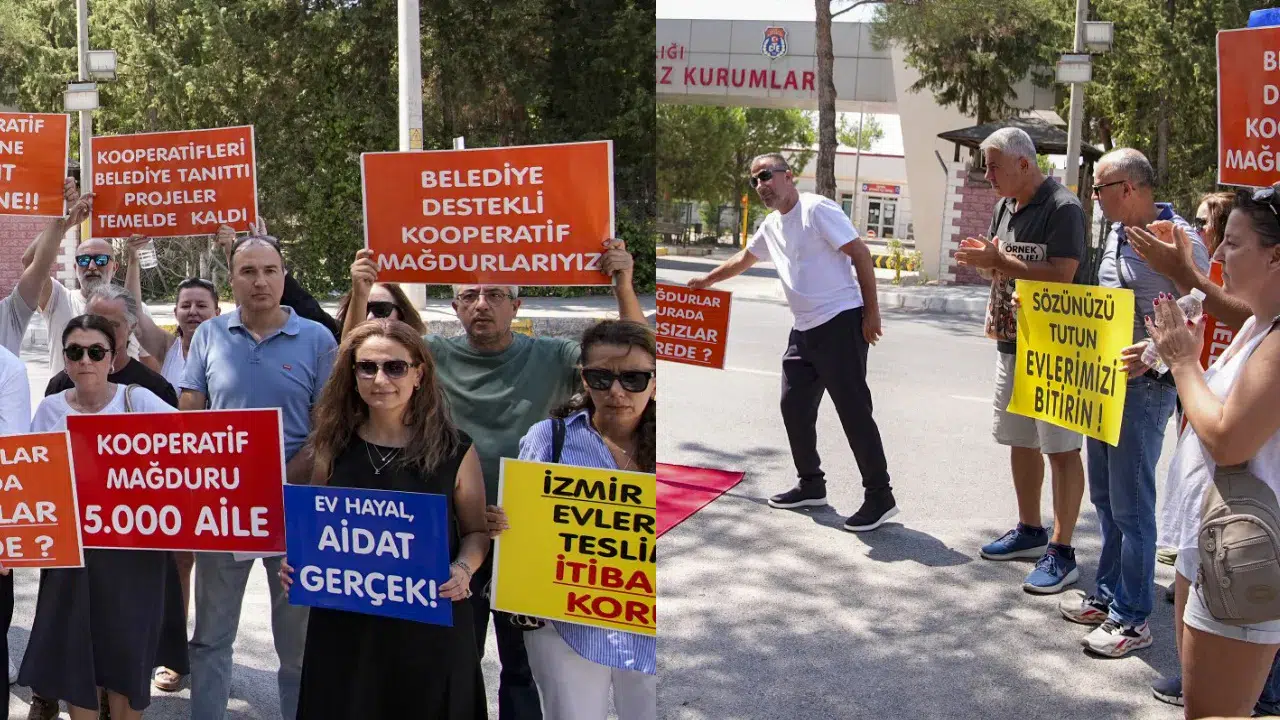 Kooperatif soruşturması kapsamında tutuklu bulunan CHP İzmir İl Başkanı Şenol Aslanoğlu ile eski İzmir Büyükşehir Belediye bulunduğu Buca Ceza İnfaz Kurumu önünde toplanan grup, "Belediyeye güvendik, mağdur olduk", "Mağdurlar burada, hırsızlar nerede?" yazılı pankartlar taşıdı.