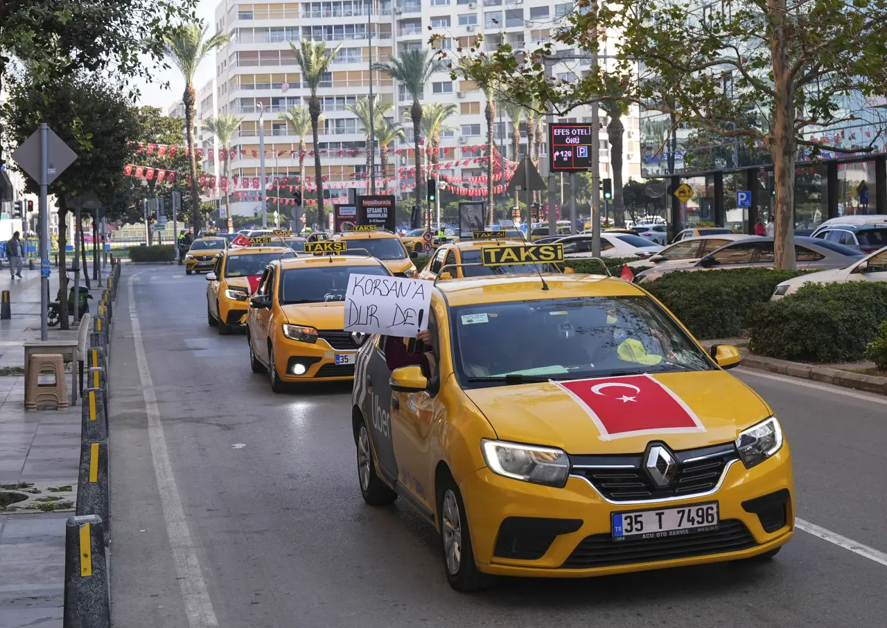 İzmir'de konvoy oluşturan bir grup taksi şoförü, korsan taksiciliğe tepki açıklaması yaptı.