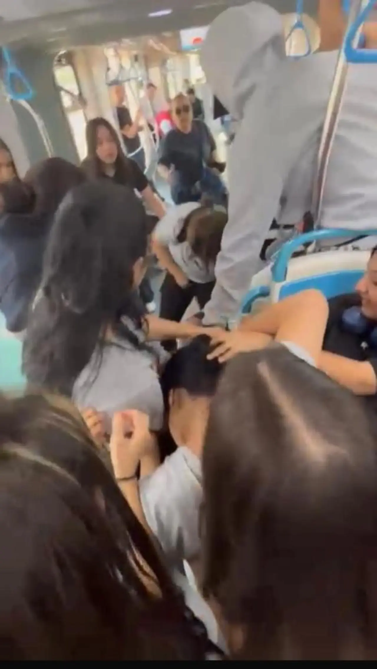 BİR GRUP KIZ ÖĞRENCİ TRAMVAYDA KAVGA ETTİ