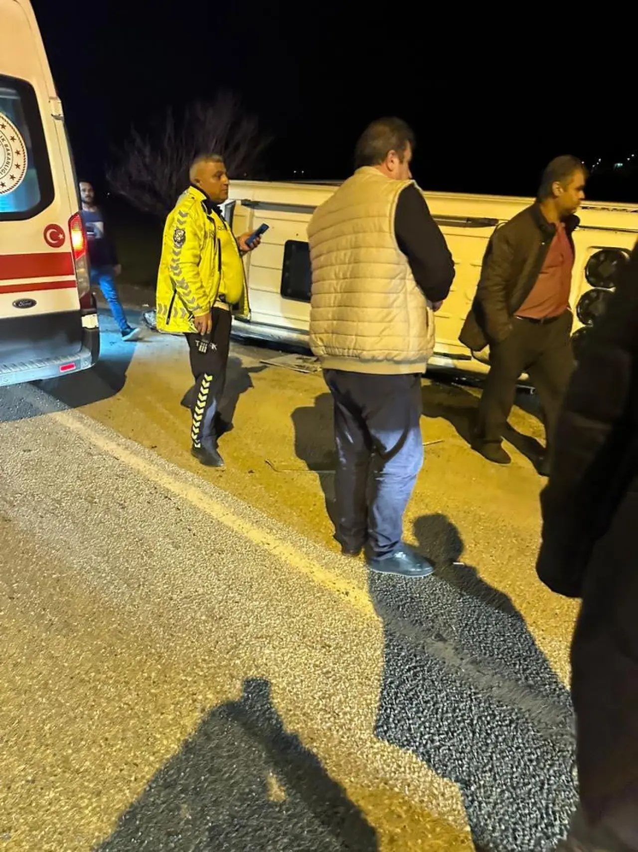 Edinilen bilgiye göre, kaza Çakallıçullu Mahallesi’nde bir petrol istasyonu yanında meydana geldi. Sürücüsünün direksiyon hakimiyetini kaybettiği minibüs devrildi.