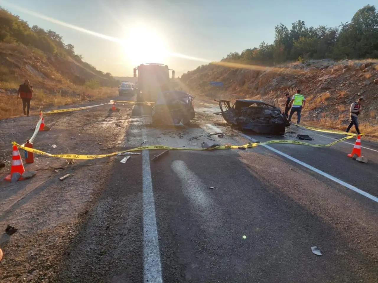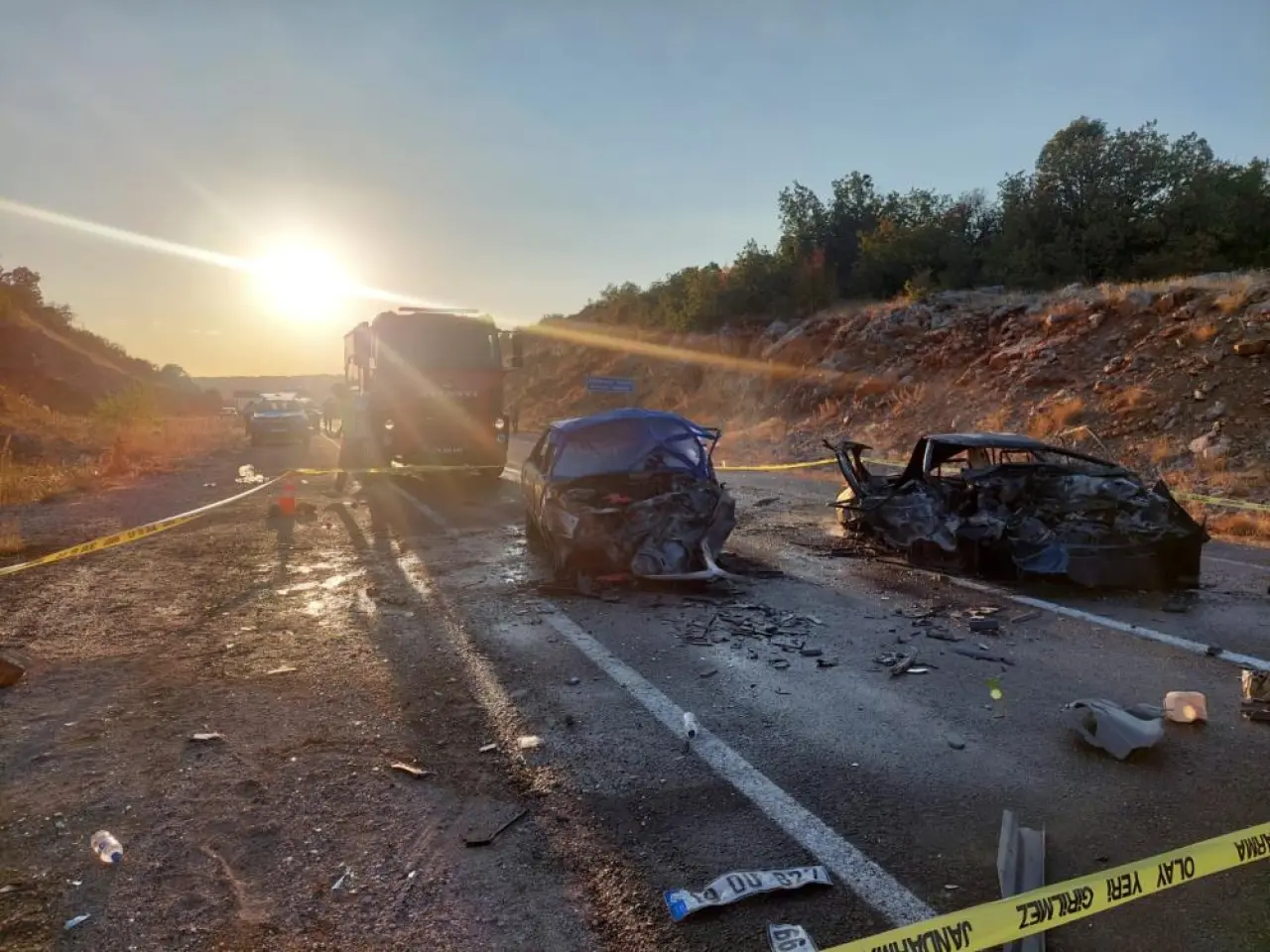 Araç içerisinde sıkışan 3 kişi yanarak feci şekilde can verirken, 5 kişinin de yaralandı. Kazayı gören çevredeki diğer sürücülerin durumu 112 Acil Çağrı Merkezi'ne bildirmesi sonucunda bölgeye polis, sağlık, jandarma ve itfaiye ekipleri sevk edildi. Olay yerine gelen sağlık ekipleri tarafından ilk müdahalesi yapılan 5 yaralı hastaneye kaldırıldı. Kaza nedeniyle karayolu çift yönlü olarak ulaşıma kapandı.
