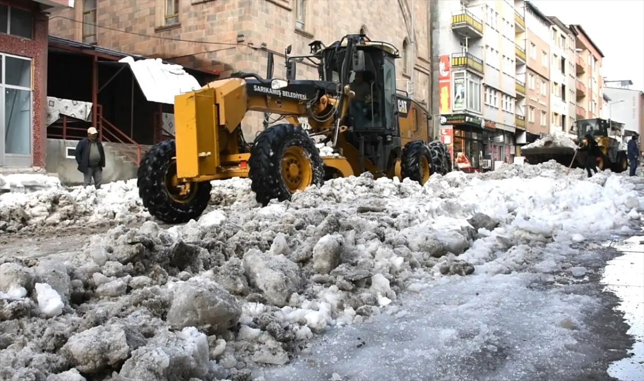 İlçede bina çatılarında uzun buz sarkıtları oluşurken, yoğun kar yağışı ulaşımı aksatıyor. Sarıkamış Belediyesi Fen İşleri Müdürlüğüne bağlı 2 greyder, 3 kepçe ve 4 kamyon ilçe merkezinde karla mücadele çalışması başlattı. Cadde ve sokaklardaki kar ile buz kütleleri kamyonlara yüklenerek ilçe dışına taşınıyor.