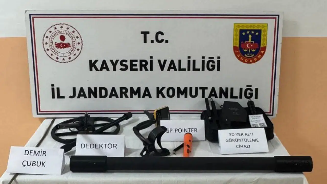 Kayseri’de jandarma ekipleri tarafından kaçak kazı yapan 3 şahıs suçüstü yakalandı. Çalışmalarda, kazıda kullanılan malzemeler ele geçirildi.