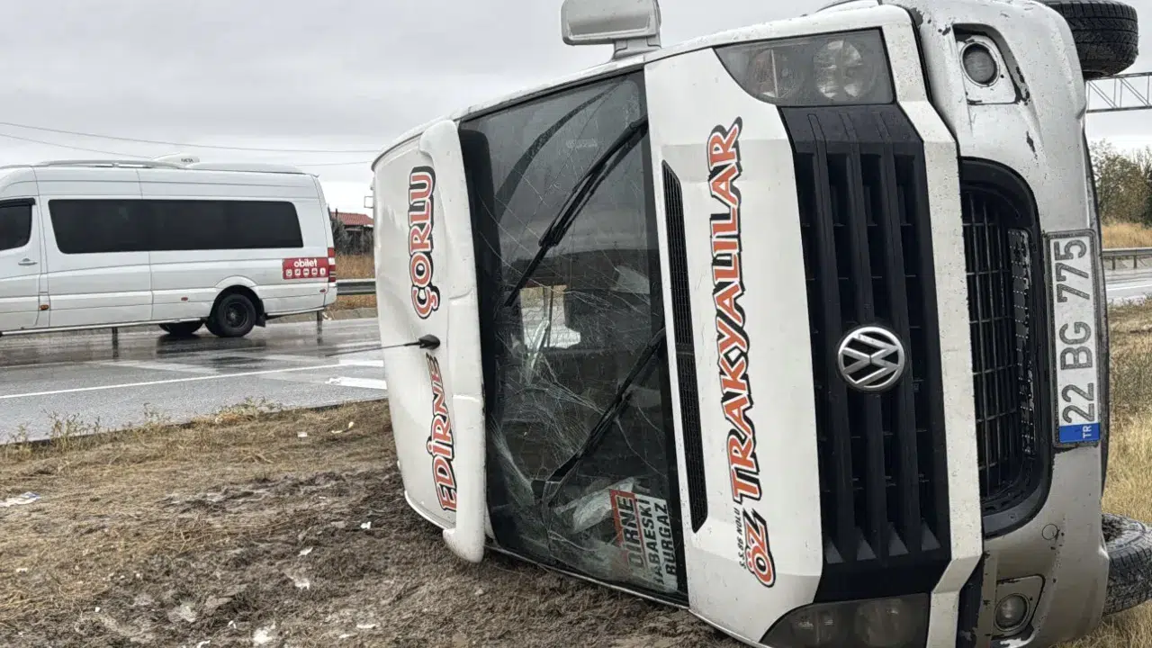 35 yaşındaki Ercan M. idaresindeki 22 BG 775 plaka minibüs Alpullu Kavşağı'nda refüje devrildi. İhbar üzerine bölgeye sağlık, polis, itfaiye ve AFAD ekipleri sevk edildi.