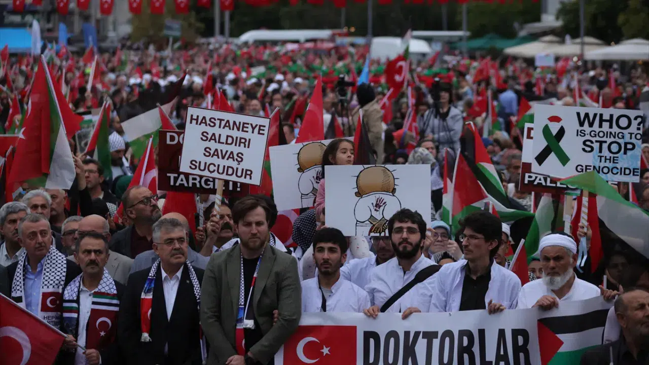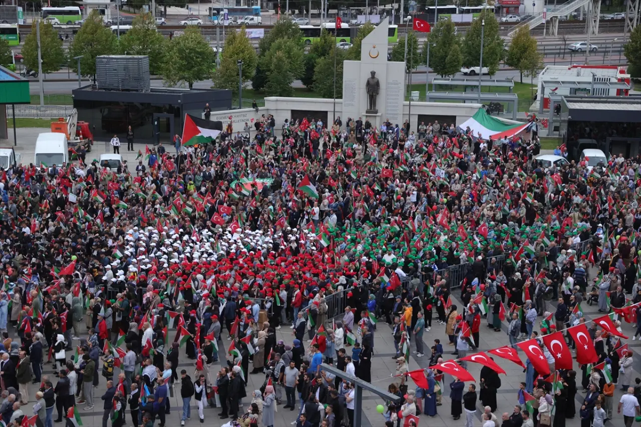 Kemalpaşa Mahallesi İstasyon Caddesi’nde bir araya gelen vatandaşlar, ellerinde Türk ve Filistin bayraklarıyla Kent Meydanı’na yürüdü. Yürüyüşe Kocaeli Valisi İlhami Aktaş, AK Parti Kocaeli Milletvekili Veysal Tipioğlu, Kocaeli Büyükşehir Belediye Başkanı Tahir Büyükakın, siyasi partilerin il başkanları ve çok sayıda vatandaş katıldı.