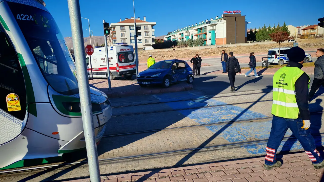 Olay, saat 09.40 sıralarında Selçuklu ilçesi Fırat Caddesi, Fırat Tramvay Durağı yakınlarında yaşandı. Karşıya geçmek isteyen otomobil sürücüsünün kırmızı ışık ihlali yaptığı iddia edildi. Bu sırada sefer halinde olan tramvay, otomobile çarptı.