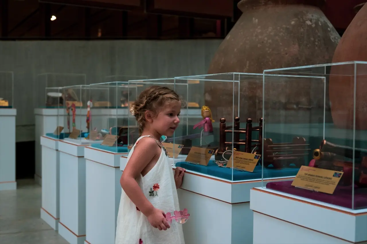 Troya Müzesi zemin kat sirkülasyon alanında açılan “Şehzadeler Sultanlar Oyuncak Sergisi”, Osmanlı oyuncakları atölyesi tarafından özel üretilen 41 oyuncaktan oluşuyor. Geleneksel oyuncakların hikâyeleriyle desteklenen sergi, ziyaretçilere tarihî bir yolculuk sunarken, dev boyuttaki oyuncaklarla hatıra fotoğrafı çekme imkânı da sağlıyor.
