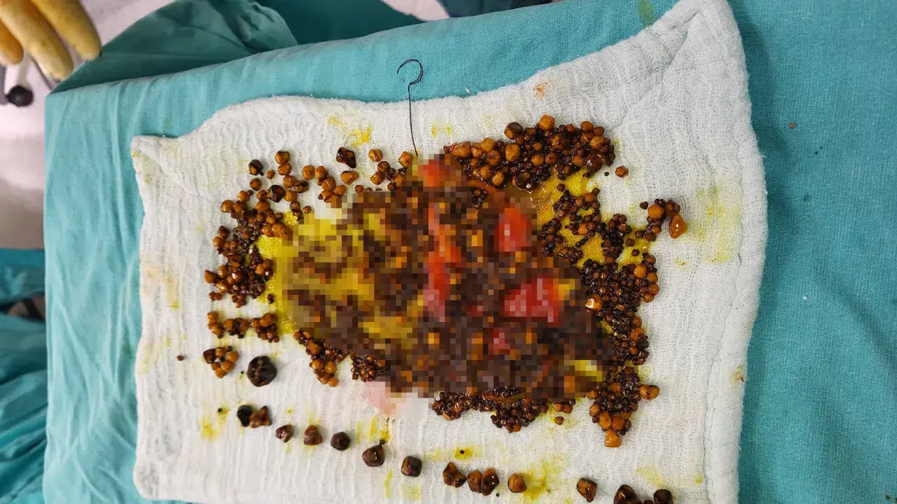 Manisa'nın Turgutlu ilçesinde yaşayan 75 yaşındaki kadın karın ağrısı, hazımsızlık, şişkinlik ve mide bulantısı şikayetleriyle Salihli ilçesindeki özel bir hastanede Genel Cerrahi Uzmanı Op. Dr. Bekir Yasa'ya başvurdu. Yapılan tetkiklerde hastanın safra kesesinde çok sayıda taş bulunduğu tespit edildi.