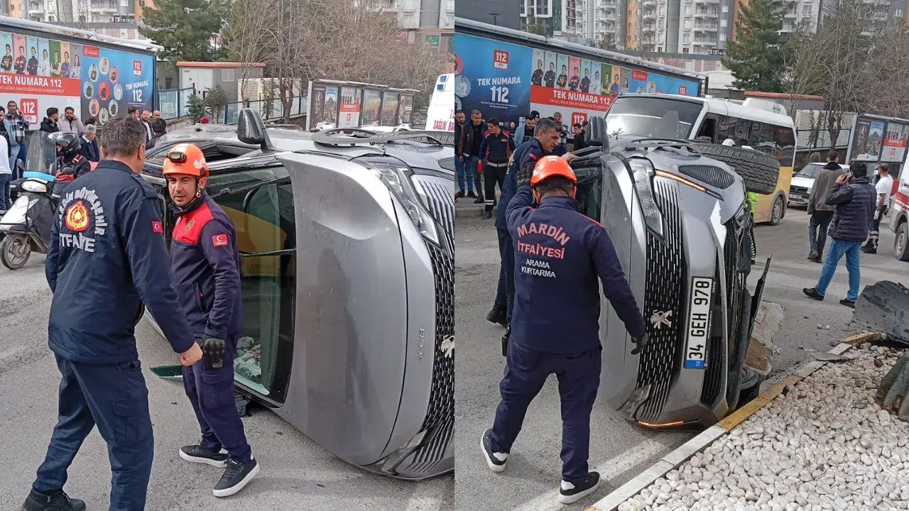 Mardin’in Artuklu ilçesinde refüje çarparak devrilen cipte bulunan 2 kişi yaralandı.