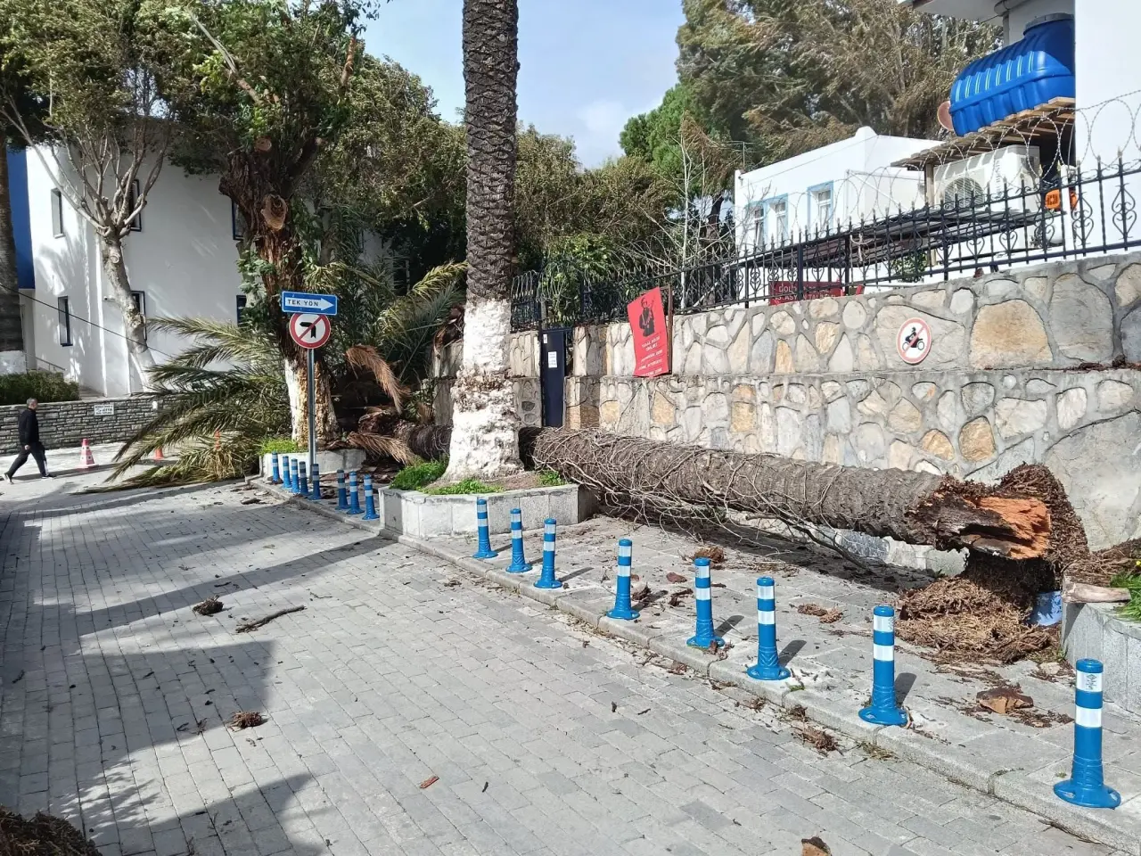 Teknedekiler, yelkenliyi karaya oturan motoryata bağlayarak sabitleyebildi. Fırtına sebebiyle ilçede çok sayıda ağaç devrildi. Bodrum Belediyesi ekipleri, devrilen ağaçları kaldırmak için çalışma başlattı.