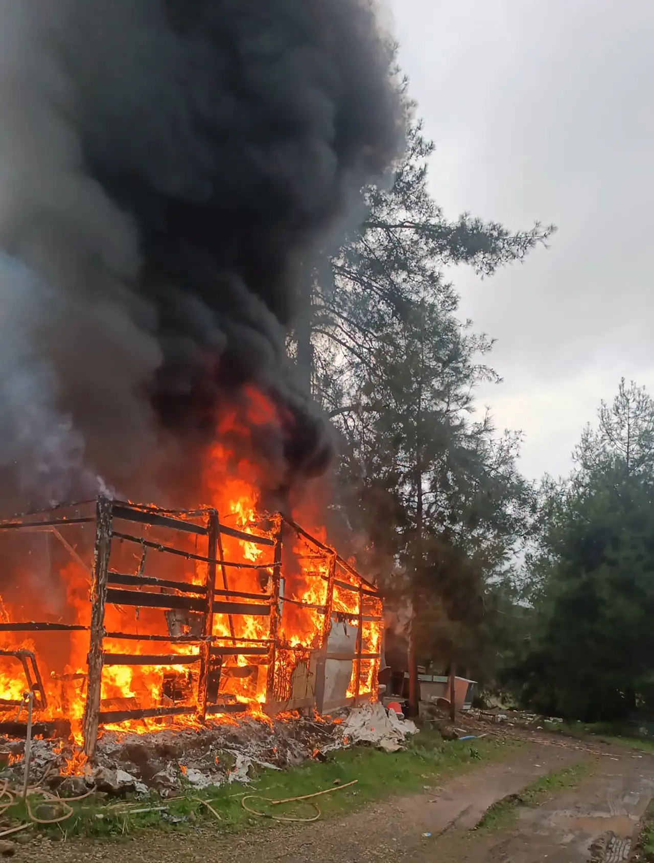 İtfaiye ekipleri yanan hasır eve müdahale ederek söndürdü.