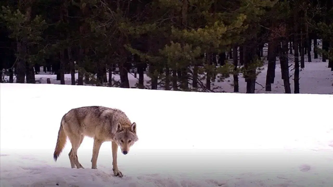 Görüntülerde kurtların temkinli hareket ettikleri, çevreyi kontrol ederek ilerledikleri görüldü.