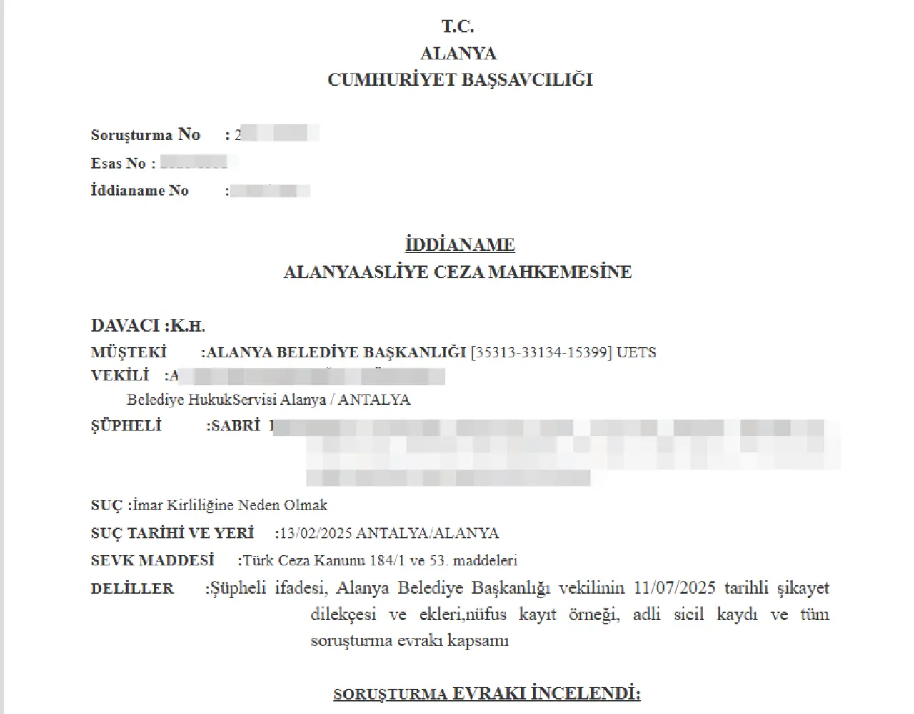 ARAZİSİNE EV YAPTIRDIĞI İÇİN BELEDİYE TARAFINDAN DAVALIK OLDU
