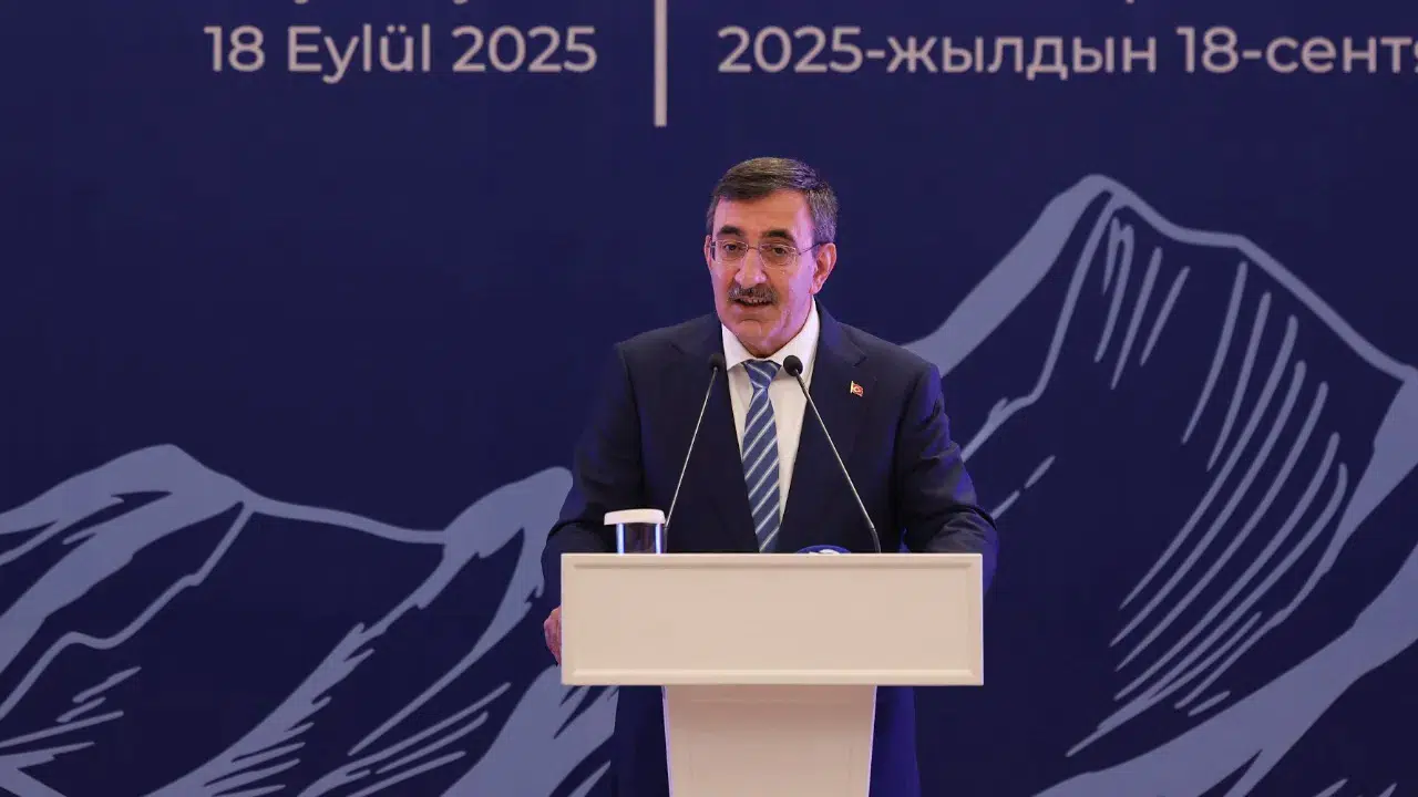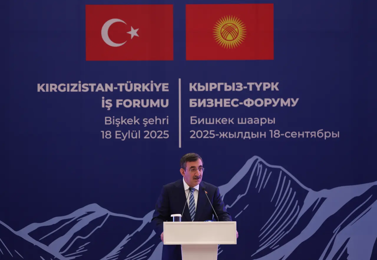 Cumhurbaşkanı Yardımcısı Cevdet Yılmaz, Kırgızistan'ın hazırladığı planlarla, vizyon belgeleriyle bölgesel bir merkez olma vizyonunu çok açık bir şekilde ortaya koyduğunu belirterek, "Biz de hem iki büyüyen ekonomi olarak hem de dost ve kardeş iki ülke olarak bu ortamda ticari ilişkilerimizi en üst düzeye çıkarma gayreti içindeyiz." dedi.