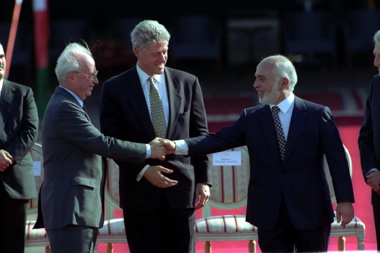 1948 Arap-İsrail Savaşı’ndan bu yana resmen savaş durumunda olan Ürdün ve İsrail, 1994 yılında barış için masaya oturdu. Ürdün Kralı Hüseyin ile İsrail Başbakanı Yitzhak Rabin, 25 Temmuz 1994’te Washington’da bir deklarasyon imzalayarak aralarındaki yaklaşık 46 yıllık husumeti sona erdiren tarihi bir el sıkışma gerçekleştirdiler. ABD Başkanı Clinton’ın ev sahipliğindeki törende Hüseyin ve Rabin’in tokalaşması, yarım yüzyıldır süren düşmanlığın bitişini sembolize etti. Ardından Ekim 1994’te iki ülke arasında resmi barış antlaşması imzalandı. Bu barış sürecinde, daha önce gizli görüşmelerde bir araya gelen Hüseyin ve Rabin’in kişisel dostluk geliştirmeleri ve karşılıklı güven tesis etmeleri belirleyici oldu. Sonuçta Ürdün, Mısır’dan sonra İsrail ile barış yapan ikinci Arap ülkesi oldu ve eski cephe düşmanları diyaloğu kalıcı ilişkilere dönüştürdüler.