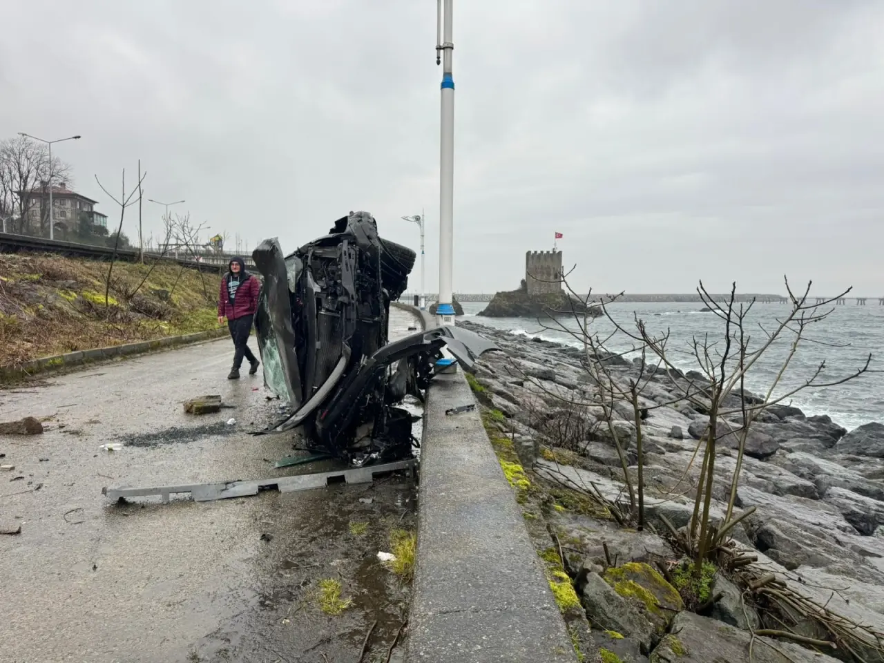 Yoldan aşağıya düşen otomobil denizle yaya yolunu birbirinden ayıran beton bariyere çarparak durabildi. Kazada yaralanan sürücü B.S., olay yerine çağrılan sağlık ekiplerinin ilk müdahalesinin ardından ambulansla Kaçkar Devlet Hastanesi’ne kaldırıldı. Yaralının sağlık durumunun iyi olduğu öğrenildi. Kaza ile ilgili inceleme başlatıldı.