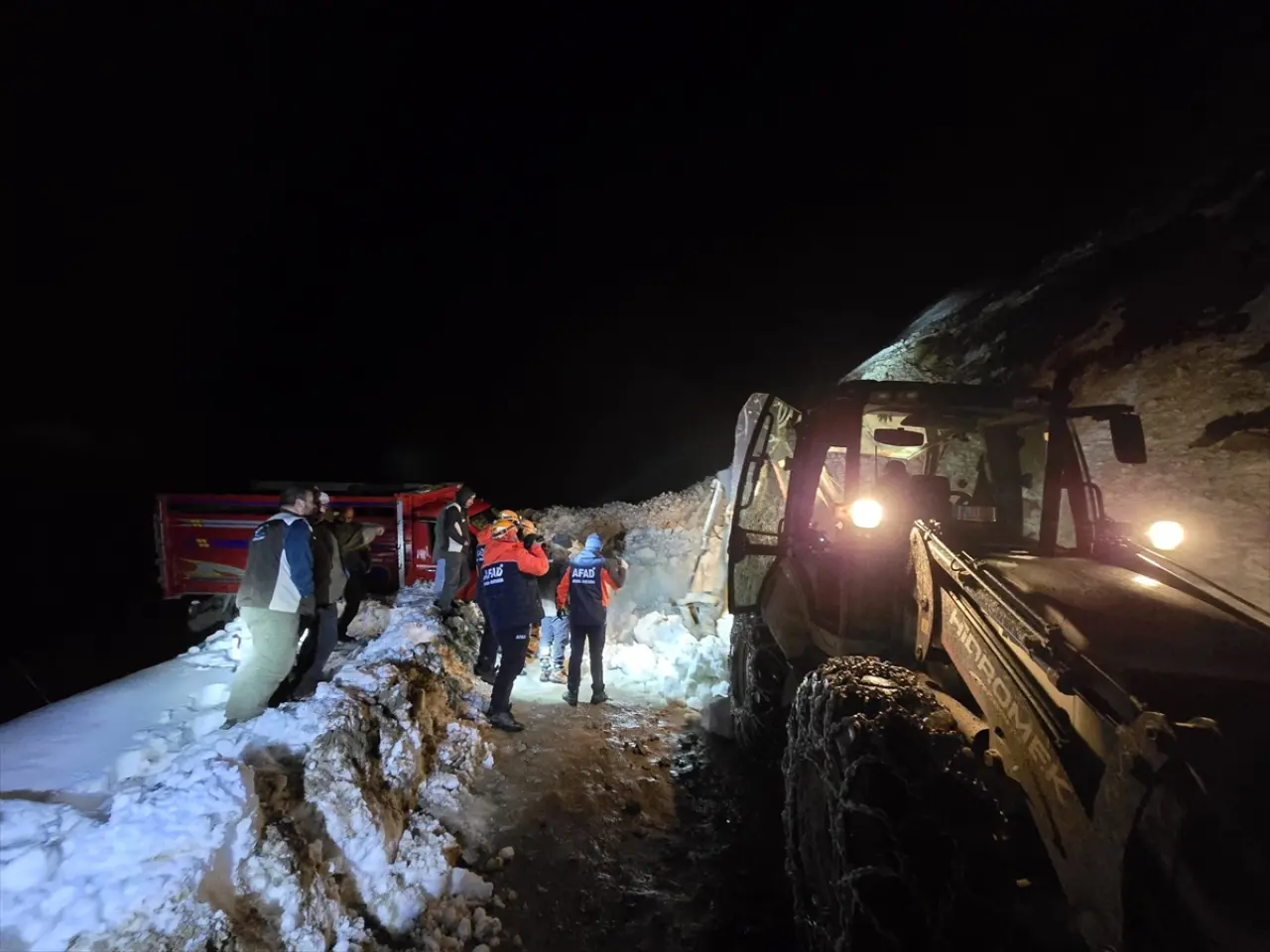Yolda seyir halinde bulunan ve içinde hayvanların da yer aldığı bir kamyonete çığ çarpması sonucu uçurumun kıyısında askıda kaldı. İhbar üzerine bölgeye AFAD, Jandarma ve iş makineleri sevk edildi.