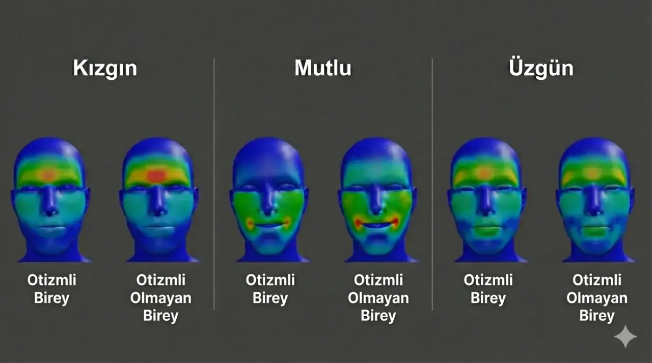 Araştırma sonucunda otizmli katılımcıların, duygularını ifade ederken akranlarından belirgin şekilde ayrılan ve daha geniş bir yelpazeye yayılan "benzersiz" ifadeler ürettiği görüldü. Belirlenen temel farklar şunlardır: