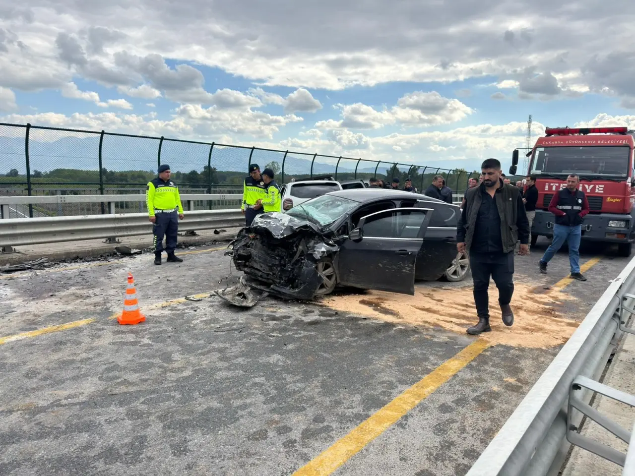 Kaza, Vakıf Mahallesi Ada Caddesi'nde bulunan ve Kuzey Marmara Otoyolu üzerinden geçen Vakıf Köprüsü'nde meydana geldi. Edinilen bilgiye göre, sivil jandarma aracı olduğu öğrenilen 54 EP 891 plakalı SUV araç ile 54 ABC 591 plakalı Opel marka otomobil köprü üzerinde kafa kafaya çarpıştı. Çarpışmanın etkisi ile savrulan araçlar hurdaya döndü.